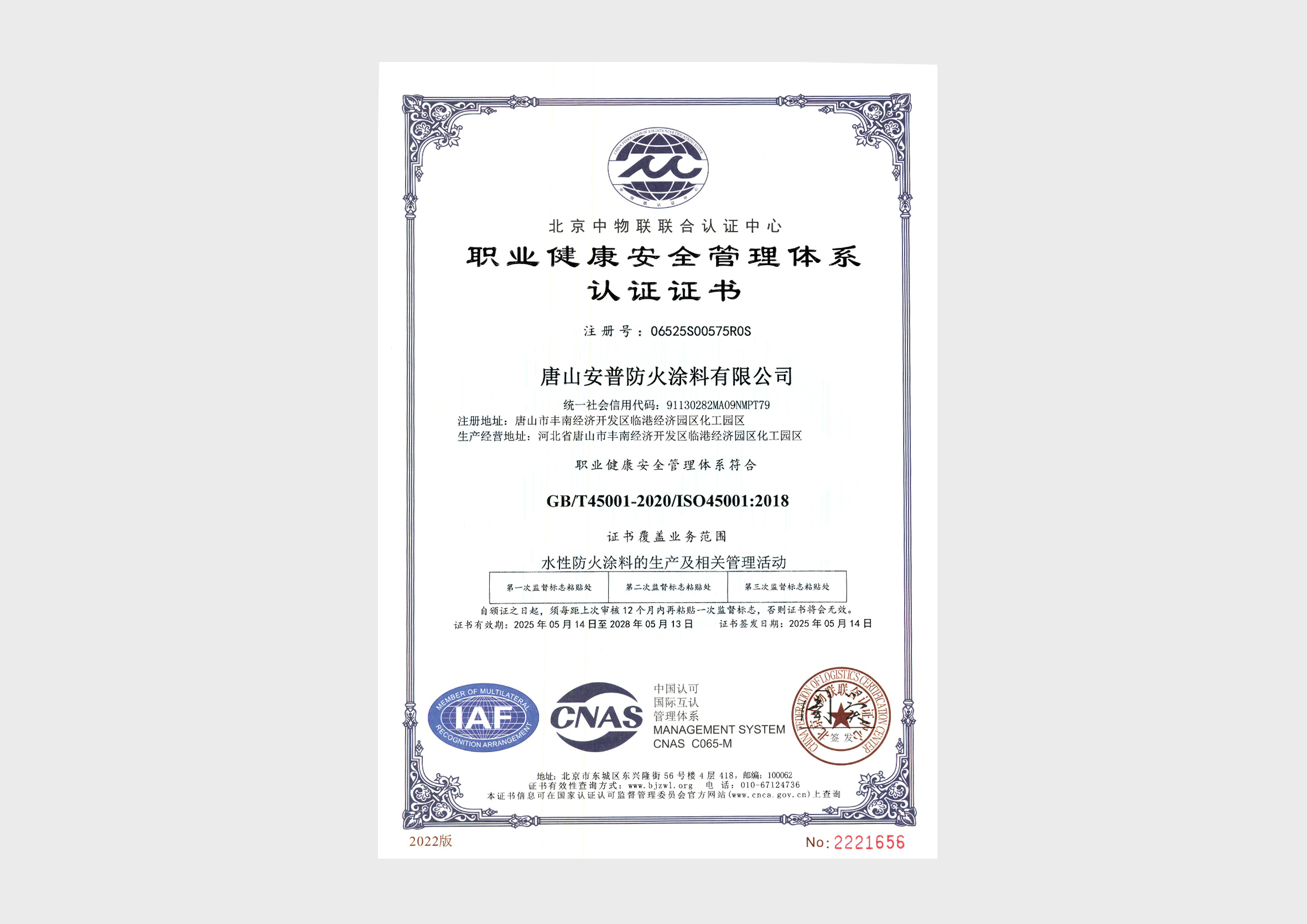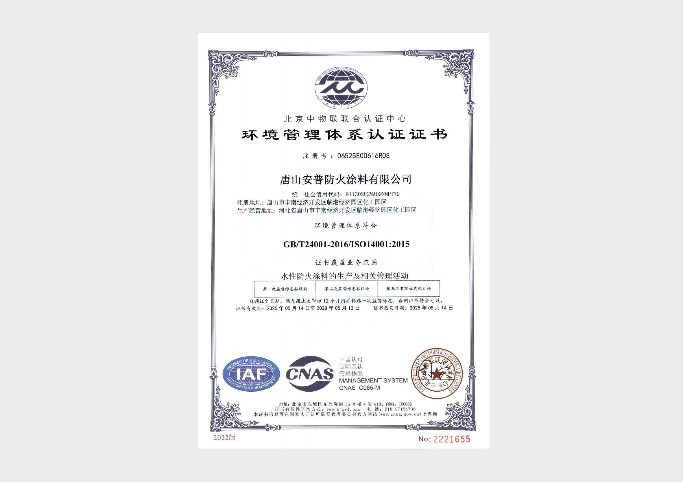 生产基地位于河北省唐山市丰南经济开发区唐山安普防火涂料有限公司,通过质量管理体系 ISO9001、环境管理体系 ISO14001、职业健康管理体系 ISO45001 认证企业,企业员工总数100人,其中管理人员20人,科研人员10人,销售 30人,其他员工 40 人。企业生产用地面积20000 平方米左右,办公用地面积1000平方米。拥有生产流水线 8 条,生产设备20多台,年生产量100000 吨。
