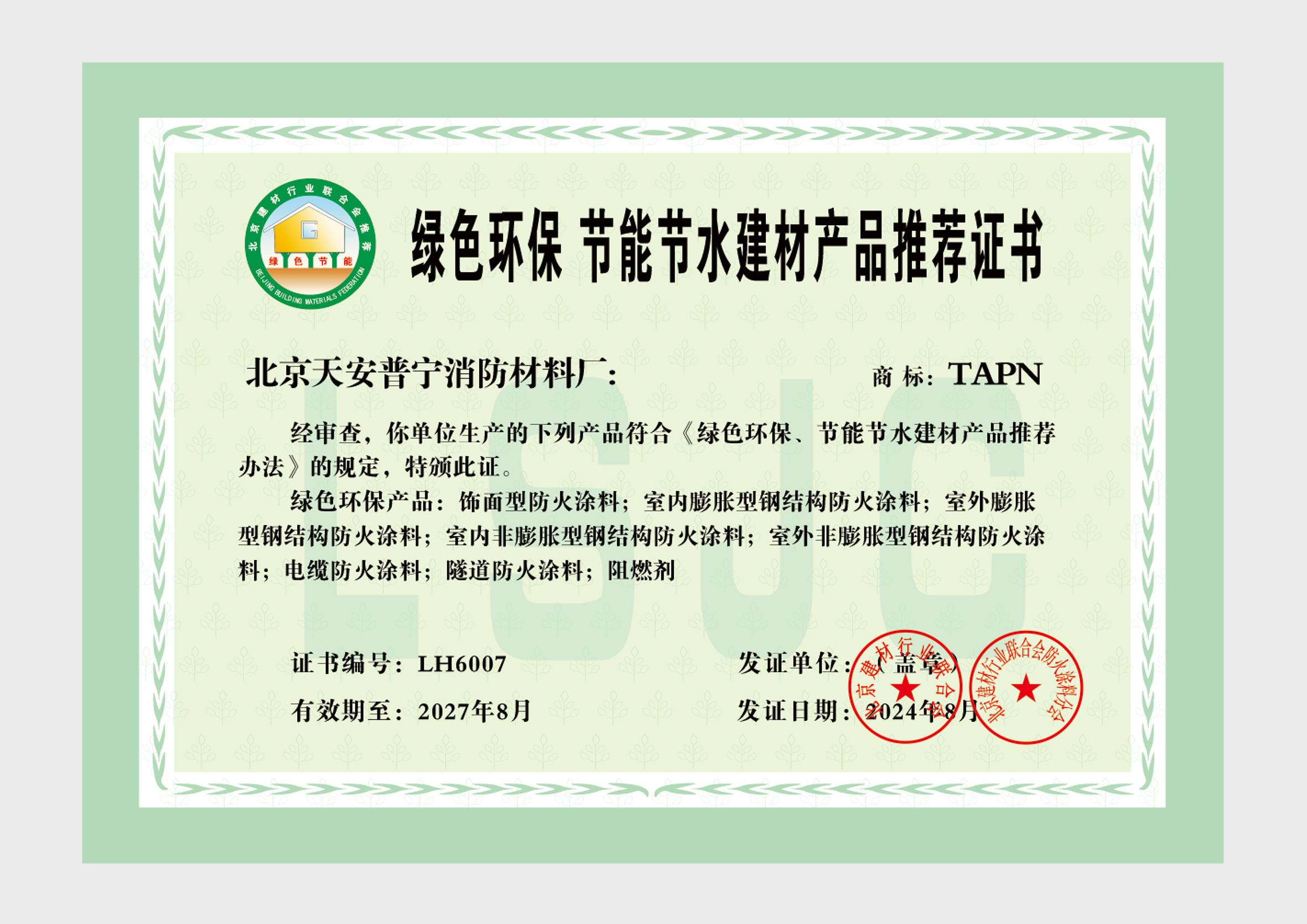 企业拥有一支高学历、资历深的研发队伍,以科学的管理,成套的生产流水线设备及完善的产品质量检验措施,产品可以满足于各类建筑工程中不同基材、不同技术要求的防火保护,天安普宁系列防火涂料全部经过《国家消防及阻燃产品质量监督检验中心》检验,理化性能合格,防火性能高,通过《应急管理部消防产品合格评定中心》认证并获得《消防身份信息标识》。